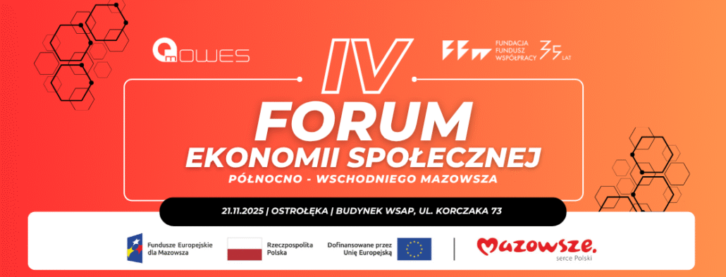 Zmiany demograficzne to kluczowe wyzwanie dla lokalnych środowisk – także Ostrołęki. Aby im sprostać, widzimy tylko jedno rozwiązanie: zmianę spojrzenia na realizację usług społecznych i otworzenie się na innowacyjne rozwiązania w tym zakresie. W jaki sposób to osiągnąć? Czy w procesie tej zmiany znajdzie się miejsce na lokalną przedsiębiorczość społeczną? Uzyskaj odpowiedzi na te i wiele innych pytań podczas IV Forum Ekonomii Społecznej Północno-Wschodniego Mazowsza. Spotkajmy się już w piątek 21 listopada 2025 r., aby rozmawiać o projektowaniu, finansowaniu i perspektywach rozwoju sektora, który zmienia lokalne społeczności. Sprawdź, co przygotowaliśmy dla Ciebie w tym roku!